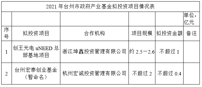 關(guān)于臺(tái)州市政府產(chǎn)業(yè)基金投資項(xiàng)目的公示